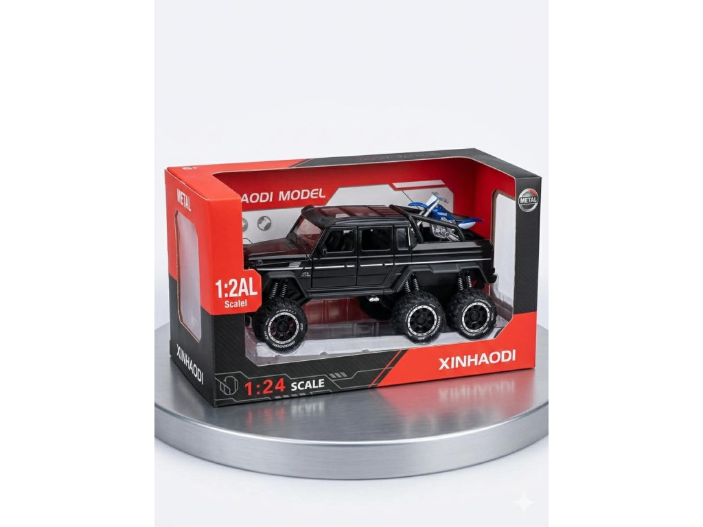 Tento detailne spracovaný die-cast model zaujme masívnym vzhľadom legendárneho 6-kolesového pick-upu